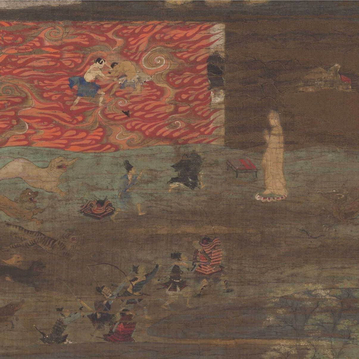 As fire was raging on one side and water was violently raging, on the path, from the other, he hesitated to take the path, but since death, otherwise, appeared imminent, he decided to go forward on this narrow path. Just then, he heard a voice from the eastern bank, urging him to go forward across the path, and another voice from the western bank, calling him to come across. He was encouraged by these voices, and carefully proceeded along the path, and with determination soon reached the western bank, where he enjoyed leisure and eternal bliss.” The river of fire symbolizes anger, and that of water, symbolizes greed. The white path symbolizes the slim possibility of awakening faith in a mind full of evil passions. The voice from the eastern bank is the Teachings of Shakyamuni Buddha, and that from the western bank, the calling voice of Amida Buddha. The western bank represents the realm of the Pure Land. This parable became very popular, and together with the painting which depicts it, has been widely used to explain the Pure Land teaching. I can see the sense of urgency that Shan Tao's imagery brings to the story. This is not about just sitting around, passively reciting the Nembutsu. This is about a path of life to which we devote our whole being. Because of this, the insights of the story can apply to all Buddhists, regardless of their school or sect, on the importance of diligently pursuing their chosen path.